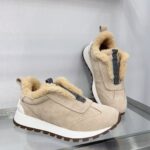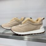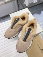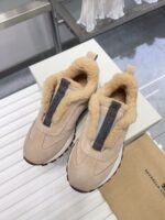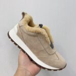【 Brunello cucinelli 】 New autumn and winter BC women’s striped suede casual lamb wool sports shoes (decorative beaded sports shoes) Style number: 25G27P