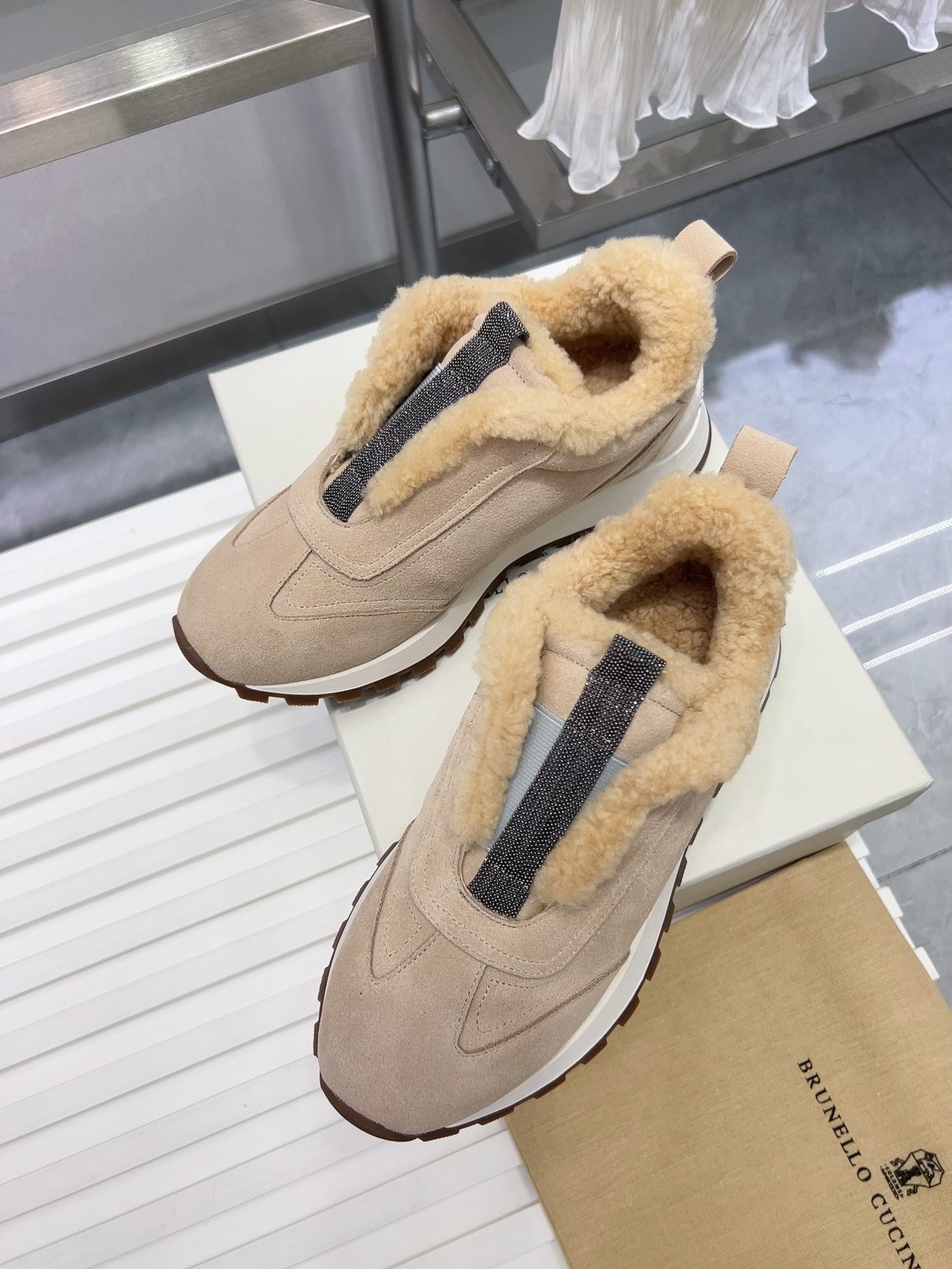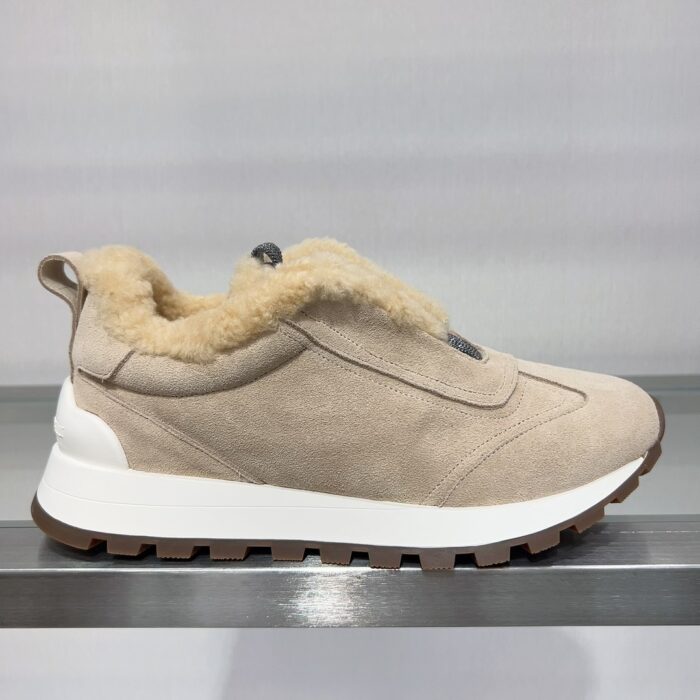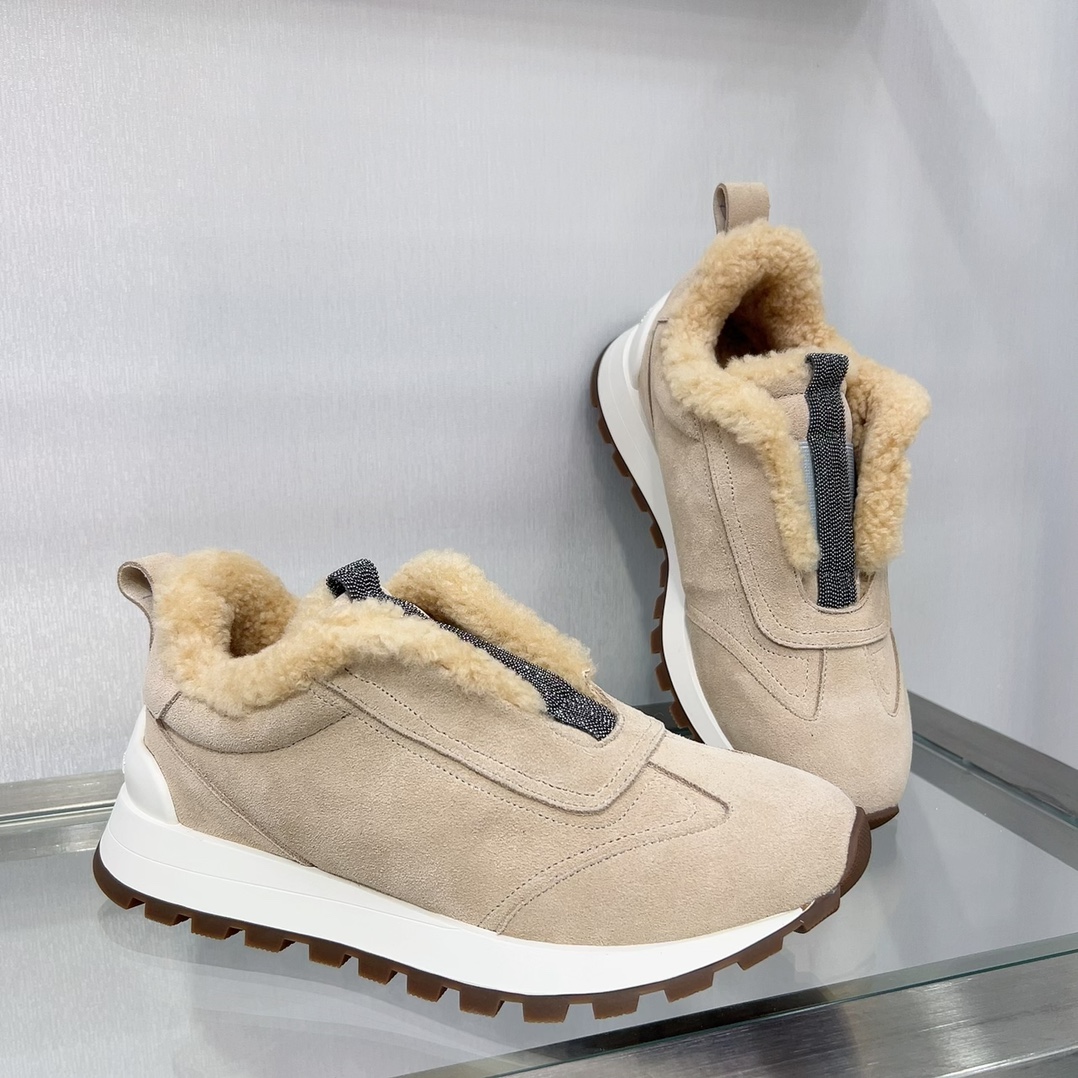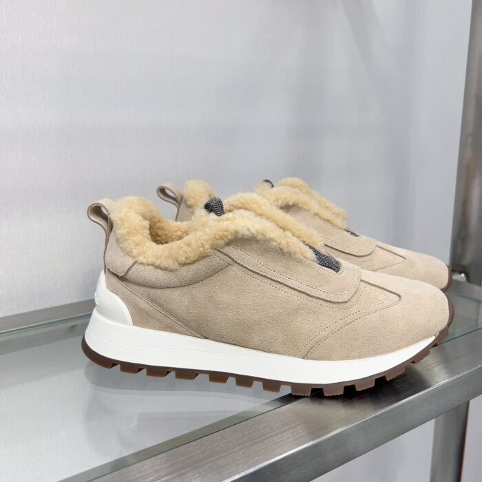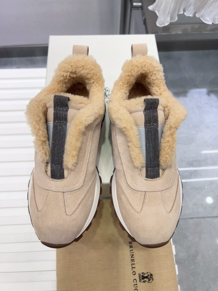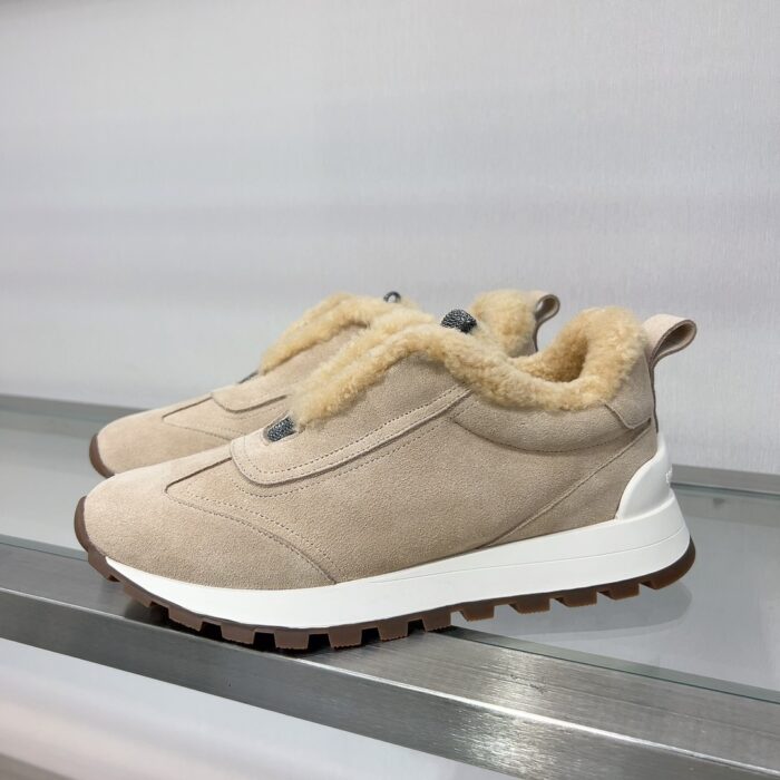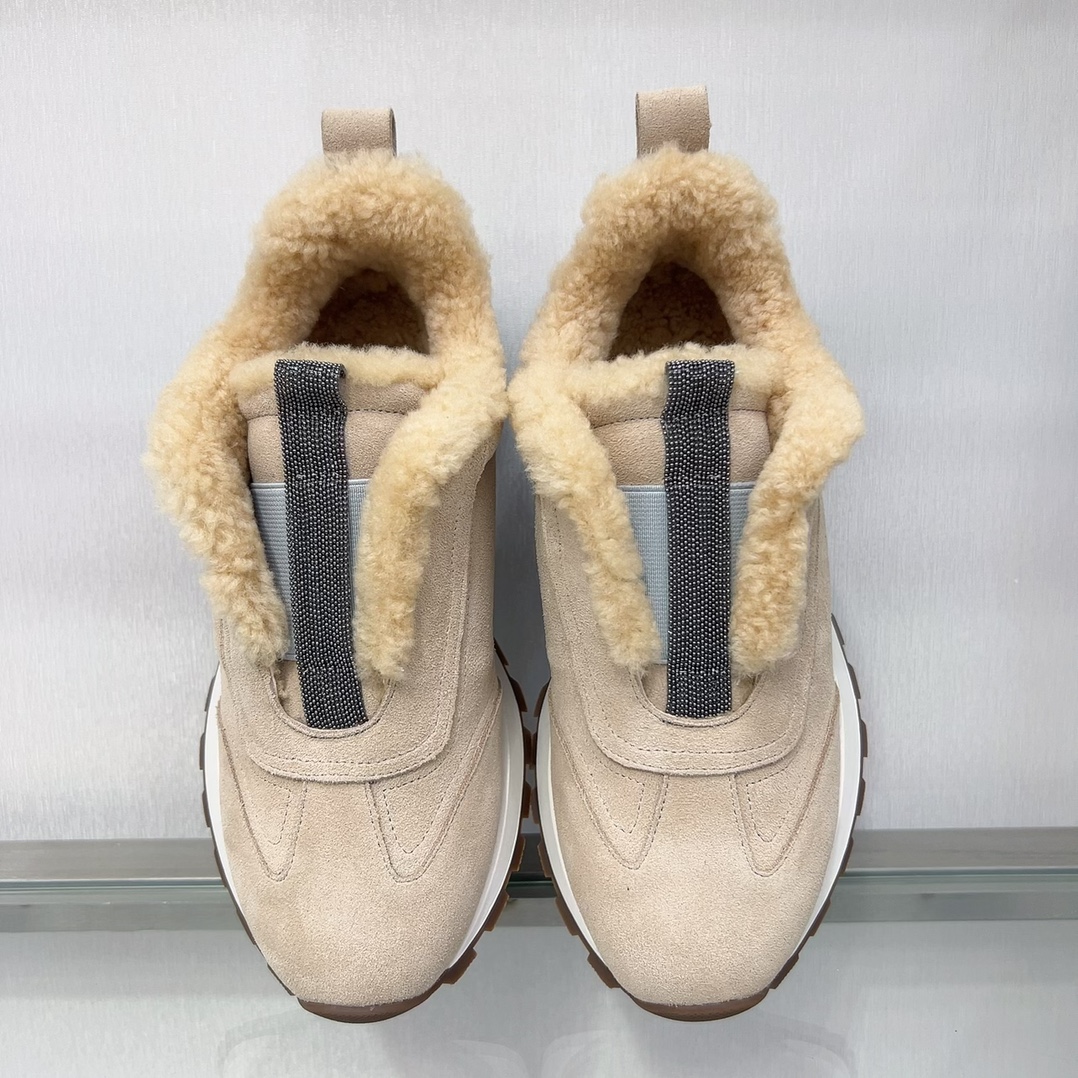 【 Brunello cucinelli 】 New autumn and winter BC women’s striped suede casual lamb wool sports shoes (decorative beaded sports shoes) Style number: 25G27P