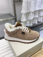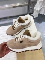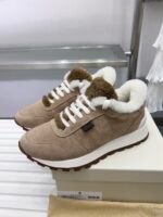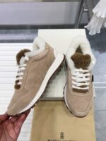 2024 Winter New Product, Brenellocucinelli BC New Autumn/Winter New Product Women’s Striped Suede Casual Lamb Wool Sports Shoes (Decorative Beaded Sports Shoes) Style Number: 25G27P