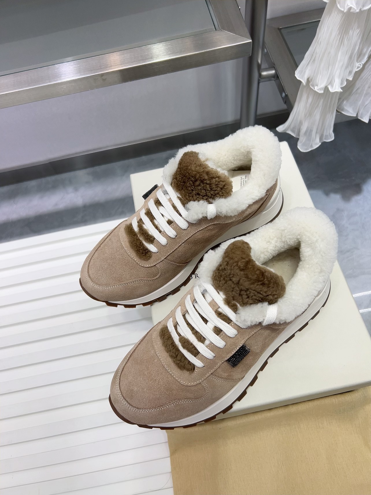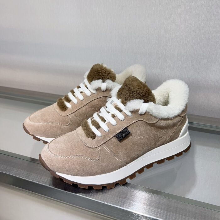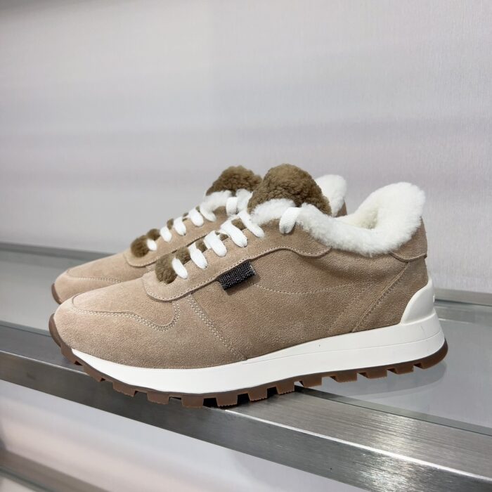 2024 Winter New Product, Brenellocucinelli BC New Autumn/Winter New Product Women’s Striped Suede Casual Lamb Wool Sports Shoes (Decorative Beaded Sports Shoes) Style Number: 25G27P