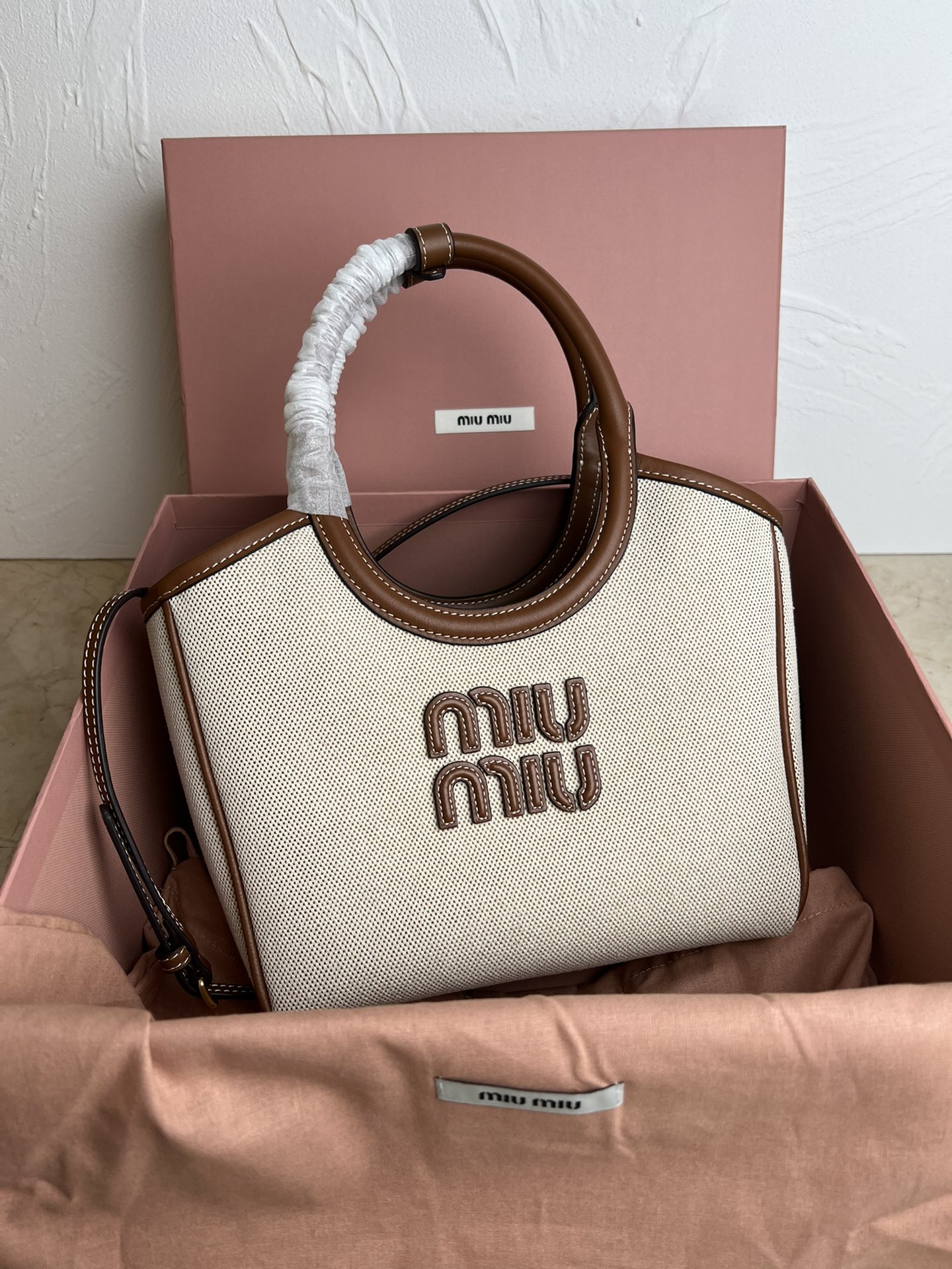 New Product Launch ️️ Miu Miu Home IVY Basket Handbag The key to this new IVY handbag lies in its minimalist lines, urban style, and premium cowhide leather. It features an exquisite and sophisticated design, adorned with letter logos, showcasing a classic style. The most special feature of this handbag is that the handheld part is circular, and both have a super retro and cute outer front line. It has a girlish feel when held in the hand, with a handle, detachable and adjustable shoulder straps Lined with double zippered pockets ❇️ Style number: M288 Color: White Size: 27.5 (20.5) x11x15 (18)